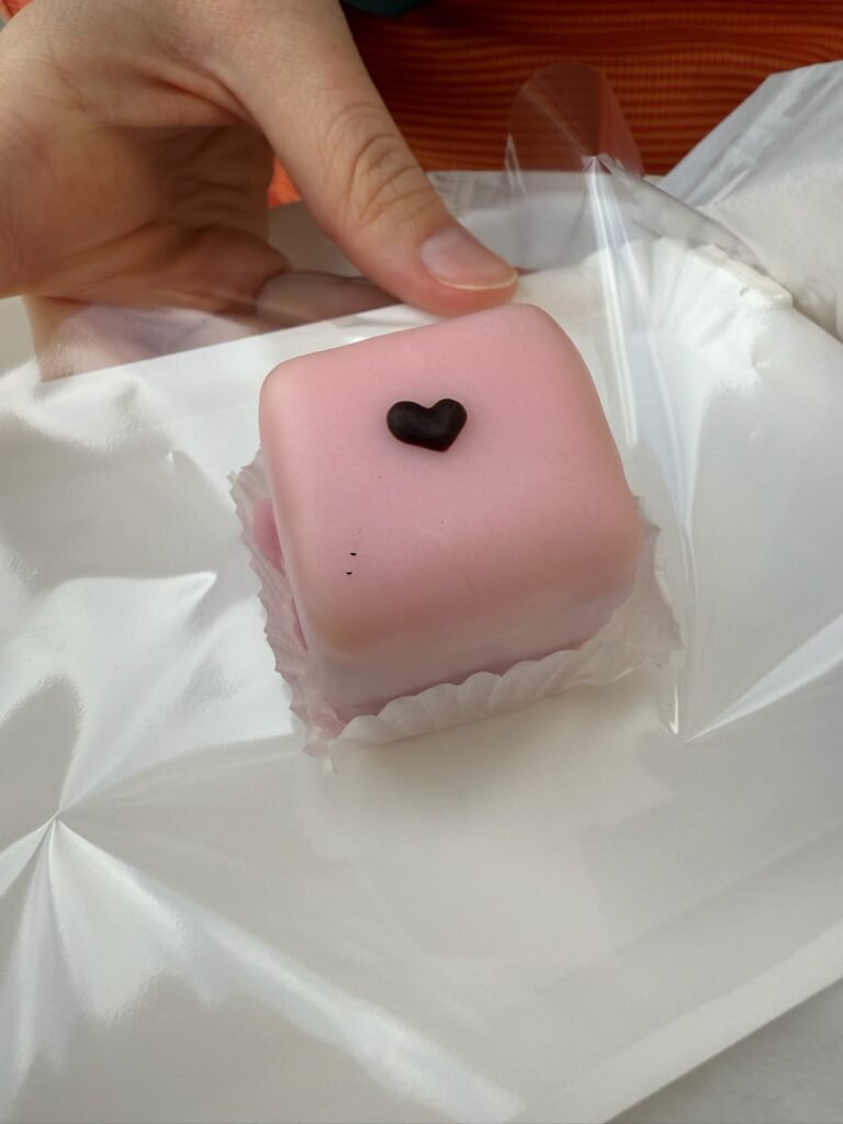 Upstairs we found all the baked items, and that is where I spotted Punschkrapfen, which I had heard was something you should try at least once. Some people think it is not good at all, so it depends on your taste. I personally really enjoyed it. It is extremely sweet though, so I am glad Wyatt and I split it. It also kind of tasted like nail polish remover, which I know sounds awful, but I want to give a fair warning. It is soaked in rum, and that is exactly where the nail polish remover vibe comes from. Honestly, I liked it in a weird way.