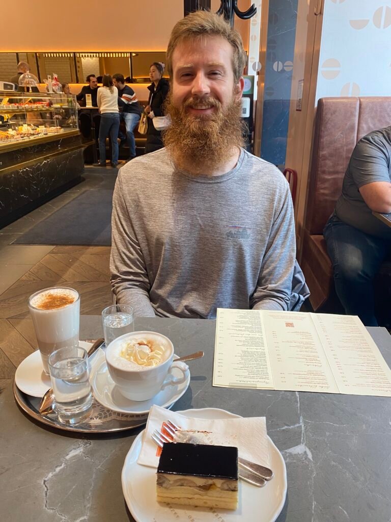 The banana schnitte was okay. It was not my favorite, which is saying something because I love banana. The whole experience felt pretty middle tier, which was a bit disappointing. The environment was also incredibly loud. I could not hear Wyatt and he could not hear me. Overall, I cannot say we really liked this place. We did have a much better Vienna cafe experience the next day. I think it really depends on your style and what you want overall. We would rate this one a 2.5 out of 5, very okay.